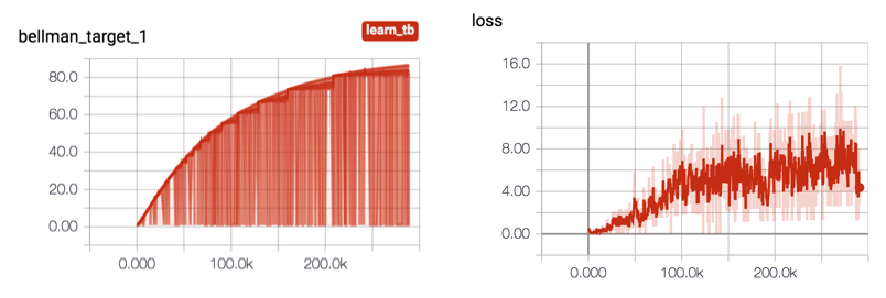 Taking a look at the loss function (Figure 4) we can see that the agent is learning to fit this improperly formed Bellman target.