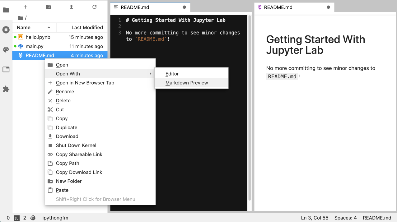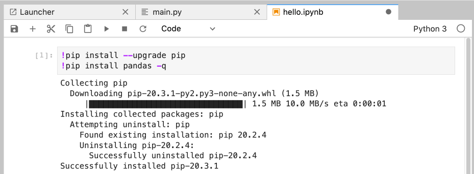 $ jupyter labYou’ll also want to make sure you activated this environment before installing Jupyter Lab.