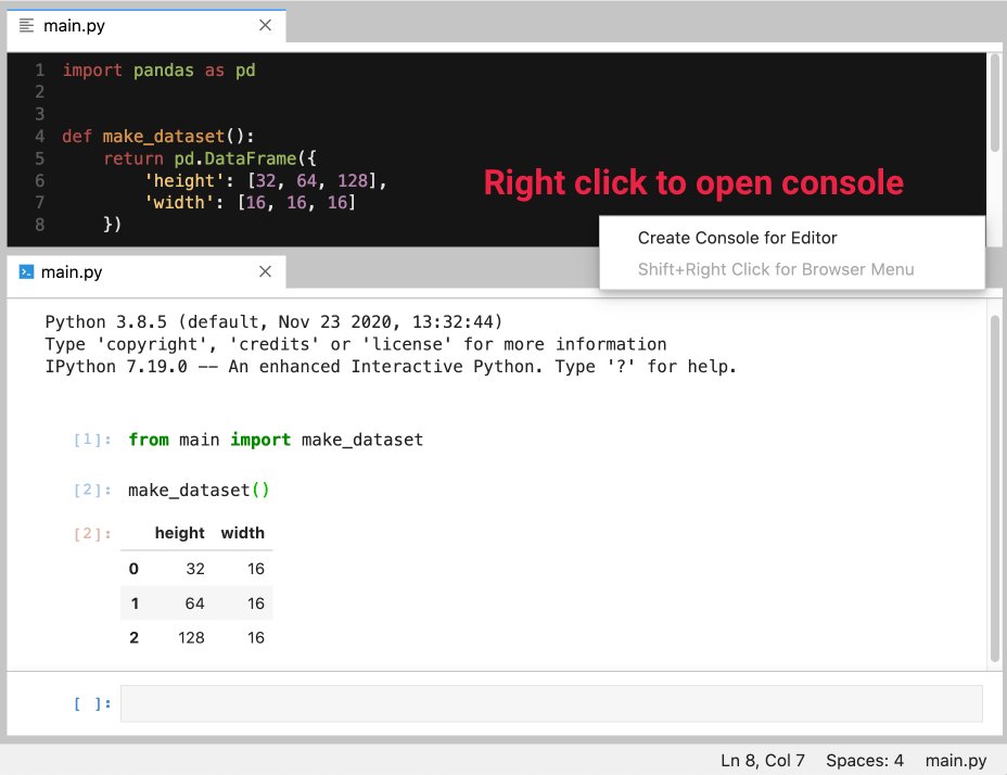 Consoles are another way to interact with a running kernel - a cool trick is to connect a console to a Python script (.py):