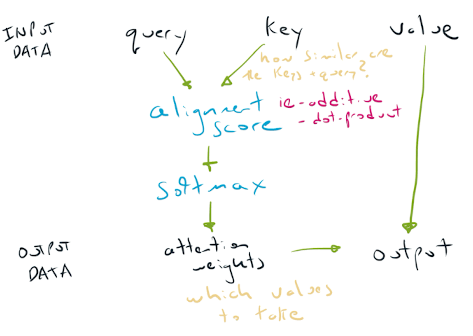 In the same way that understanding the time-step dimension is a key step in understanding recurrent neural networks, understanding what the query, key & value mean is foundational in attention.